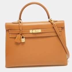 Hermes Naturel Vache Leather Gold Finish Kelly Sellier 35 Bag