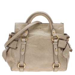 Miu Miu Grey Vitello Lux Leather Bow Satchel