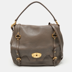 Miu Miu Grey/Off White Leather Madras Top Handle Bag