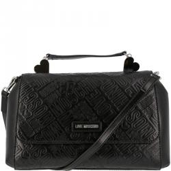 Love Moschino Black Embossed Logo Faux Leather Top Handle Satchel Bag