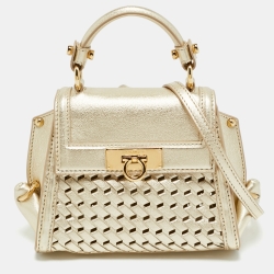 Salvatore Ferragamo Metallic Gold Leather Top Handle Bag