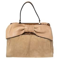 Valentino Beige/Brown Suede and Leather Aphrodite Bow Top Handle Bag
