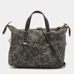 Valentino Black/Grey Lace Print Coated Canvas and Leather Logo Satchel