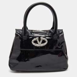Valentino Black Patent Leather Rockstud Top Handle Bag