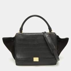 Celine Grey Croc Embossed Leather, Suede and Leather Medium Trapeze Bag