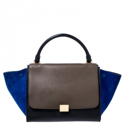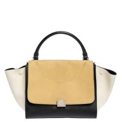 Celine Tricolor Leather and Suede Medium Trapeze Top Handle Bag