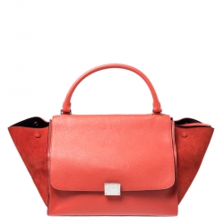 Celine Orange Leather and Suede Medium Trapeze Bag