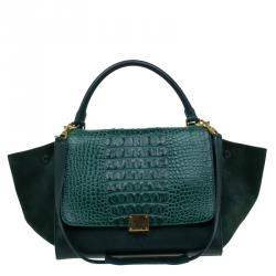 Celine Black Croc Embossed, Leather and Suede Medium Trapeze Bag
