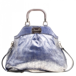 Celine Beige/Blue Leather Small Trapeze Top Handle Bag