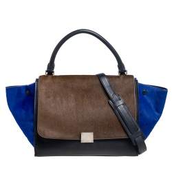 Celine Tri Color Leather and Pony Hair Medium Trapeze Top Handle Bag