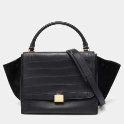 Celine Black Croc Embossed Leather Mini Belt Top Handle Bag