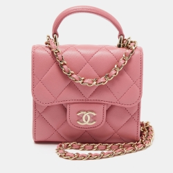 Chanel Pink Quilted Leather Mini CC Square Top Handle Bag
