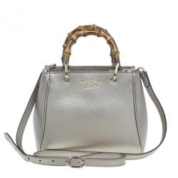 Gucci Grey Leather Dollar Interlocking G Top Handle Bag
