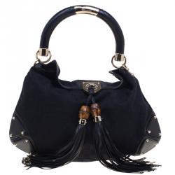 Gucci Black Leather Large New Bamboo Tassel Top Handle Bag