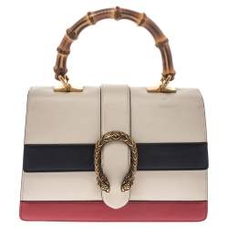 Gucci Beige Leather Bamboo Top Handle Bag