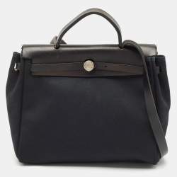Hermes Black/Blue Sapphire Coated Canvas and Leather Limited Edition Herbag Zip 31 Bag