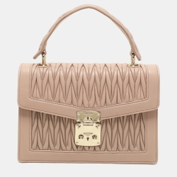 Miu Miu Beige Matelasse Leather Push Lock Top Handle Bag