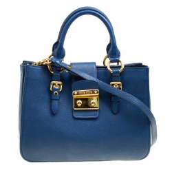 Miu Miu Blue Pebbled Leather Madras Top Handle Bag