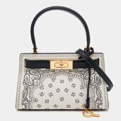 Tory Burch Black/Beige Leather and Canvas Lee Radziwill Top Handle Bag with Rain Cover