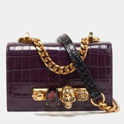 Alexander McQueen Purple Croc Embossed Leather Skull 4ring Shoulder Bag