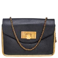 Chloe Black Pebbled Leather Medium Sally Flap Shoulder Bag
