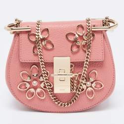 Chloe Pink/Gold Leather Medium Drew Shoulder Bag
