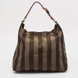 Fendi Multicolor Fabric and Leather Large Pequin Striped Hobo