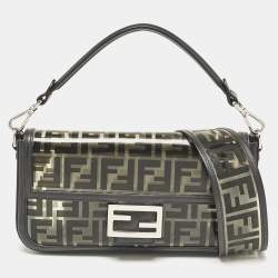 Fendi Black FF Embossed Patent Leather Medium Baguette Bag
