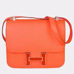 HERMES Constance 3 24 Rose Texas Vaux Epson Y stamped silver lacquer hardware shoulder bag