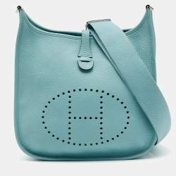 Hermes Turquoise Blue Togo Leather Evelyne III PM Bag