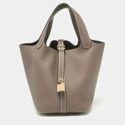 Hermes Etoupe Taurillon Clemence Leather Picotin Lock 18 Bag