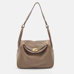Hermès Etoupe Taurillon Clemence Leather Gold Finish Lindy 26 Bag