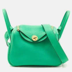 Hermes Vert Fizz Chevre Mysore Leather Gold Finish Geta Bag