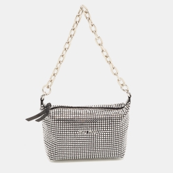 Miu Miu Black Matelassé Leather Crystals Chain Shoulder Bag