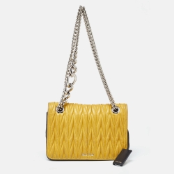 Miu Miu Yellow/Black Matelassé Leather Club Shoulder Bag