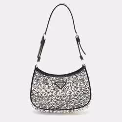 Prada Black Satin Crystal Embellished Cleo Shoulder Bag