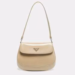 Prada Beige Brushed Leather Small Cleo Flap Shoulder Bag