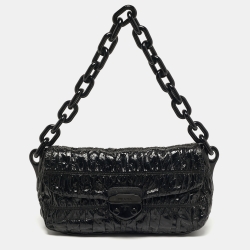 Prada Gaufre Black Gaufre Patent Leather Chain Shoulder Bag