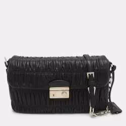 Prada Black Leather Gaufre Chain Shoulder Bags