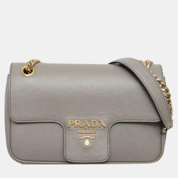Prada Grey Saffiano Flap Chain Shoulder Bag