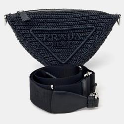Prada Black Raffia Triangle Shoulder Bag