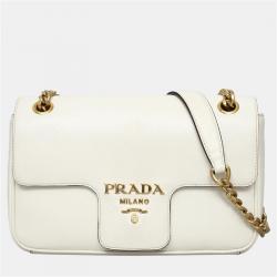 Prada Flap White Saffiano Chain Shoulder Bag
