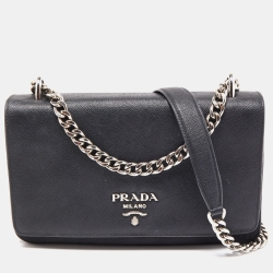 Prada Black Saffiano Leather Flap Shoulder Bag
