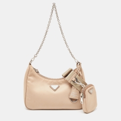Prada Beige Nylon and Leather Re-Edition 2005 Baguette Bag