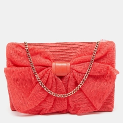 RED Valentino Coral Orange Raffia and Lace Bow Chain Bag