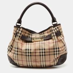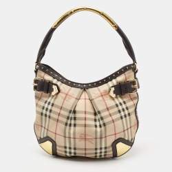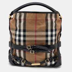 Burberry Brown House Check Canvas and Leather Bridle Hobo