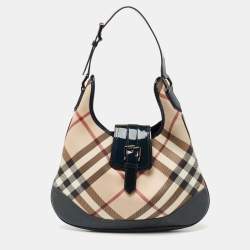 Burberry Black/Beige House Check Canvas and Leather Front Pocket Buckle Hobo