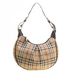 Burberry Brown Leather Bridle House Check Hobo