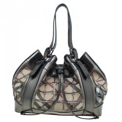 Burberry Metallic Silver Nova Check Leather Warrior Armor Hobo