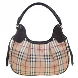 Burberry Brown Fabric /Leather Briddle House Check Beaton Hobo Bag